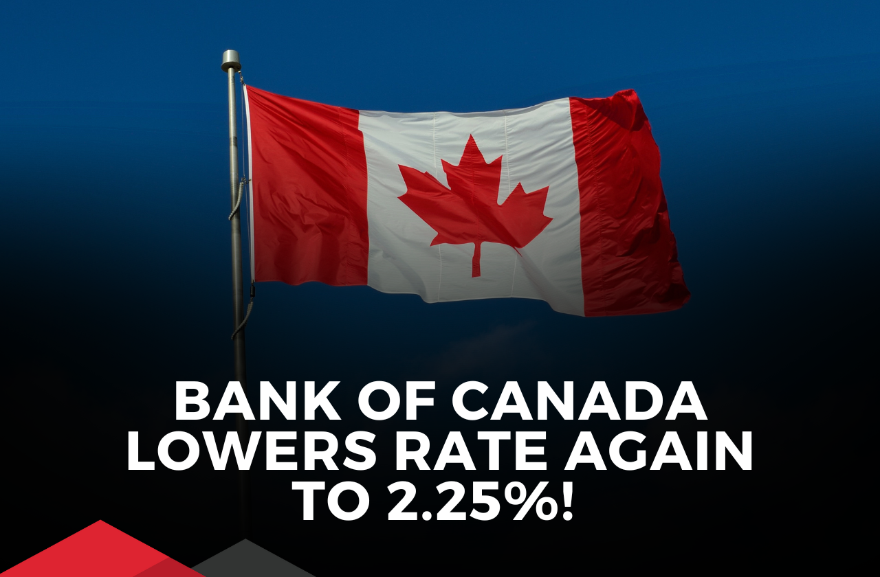 Bank of Canada announced today that they will maintain the policy rate at 2.25%!